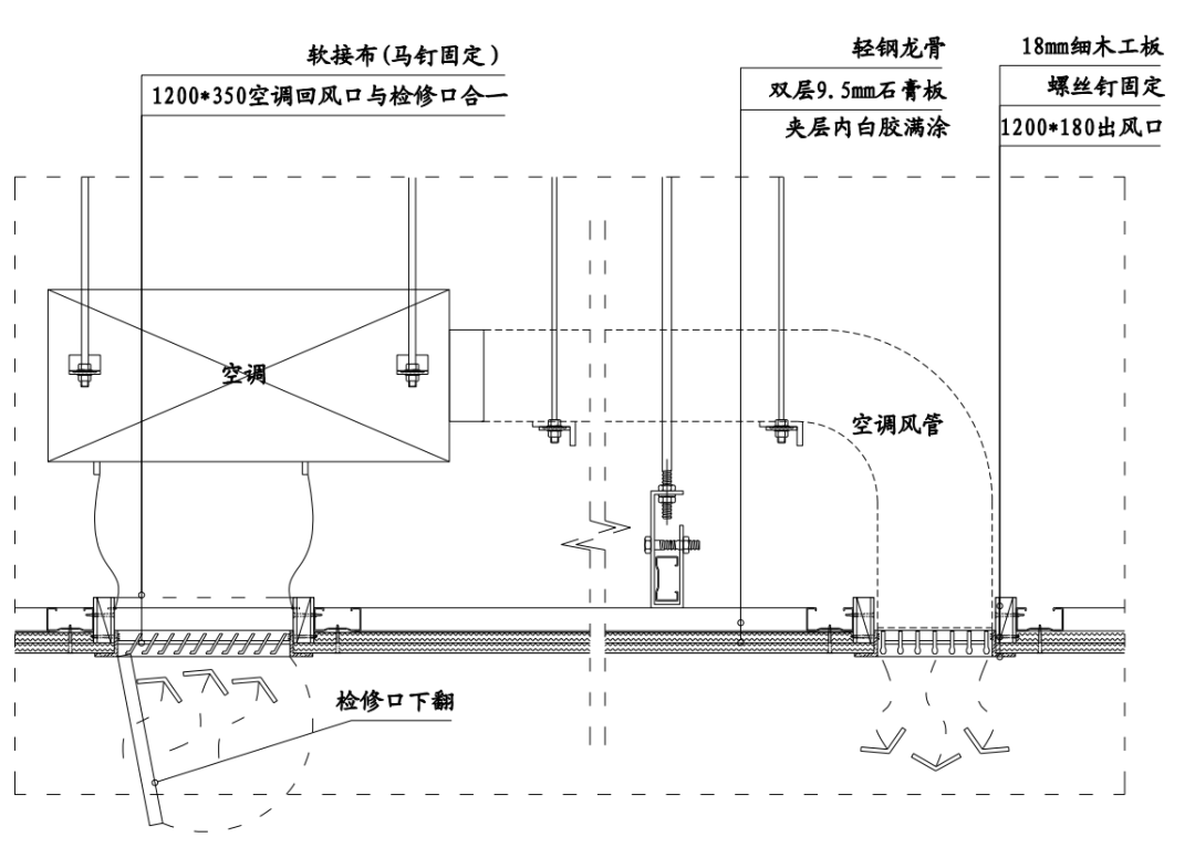 空調(diào)回風(fēng)口應(yīng)加長與檢修口二合為一。